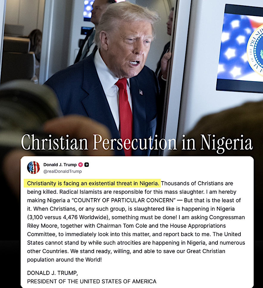 President Trump wanted the attention of Nigerian President Bola Tinubu, and he’s got it. On Friday Mr. Trump designated Africa’s most populous nation a “country of particular concern” for religious persecution. And on Saturday he wrote that if Nigeria fails to protect its Christians, the U.S. may go in “‘guns-a-blazing,’ to completely wipe out the Islamic Terrorists who are committing these horrible atrocities.”
